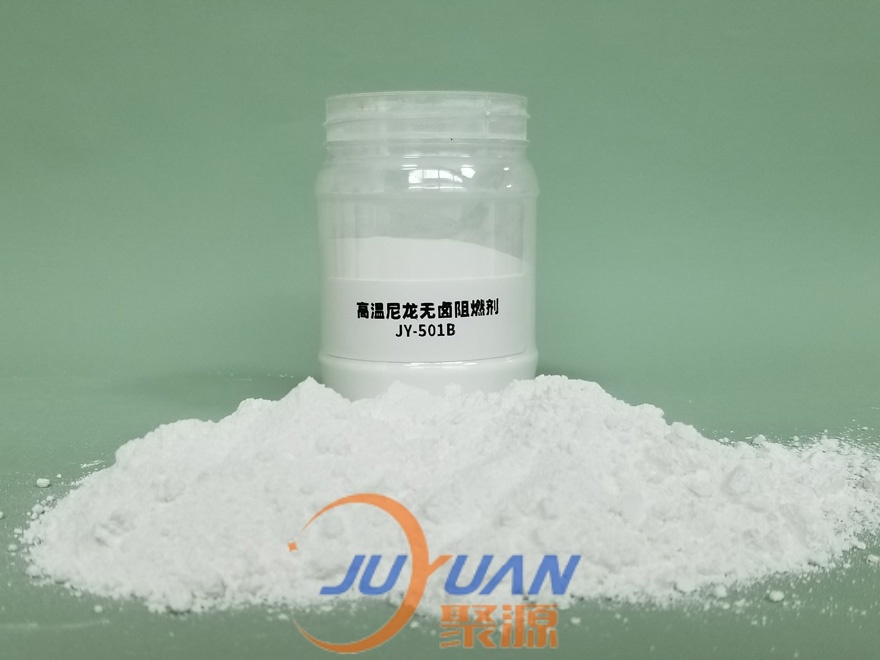 JY-501B是一种有机次磷酸盐阻燃剂,应用于PA66,6T,PPA等高温工程料无卤阻燃,符合欧盟ROHS指令和REACH法规要求。具有极佳的流动性,可以侧喂料添加,可完全替代OP1230/OP1240。